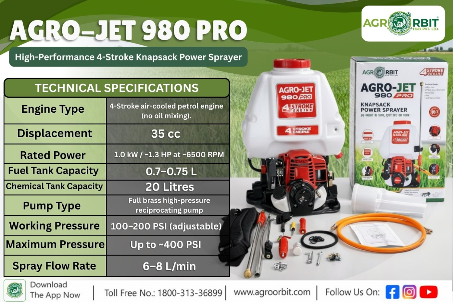 Agro-Jet 980 Pro | High-Performance 4-Stroke Knapsack Power Sprayer