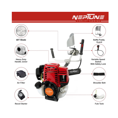 Wide Applications : Neptune brush cutter/ grass trimmer/ paddy cutter machine are the mechanized way of cutting grass, weed, bushes, brushwood and crops in the field areas, mostly used for crop cutting, paddy harvesting.