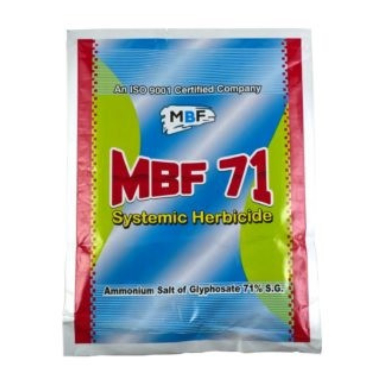 MBF 71 is an Ammonium salt of Glyphosate 71% S.G. which is a non-selective, post-emergence herbicide for the control of annual perennial, broadleaf and grassy weeds.