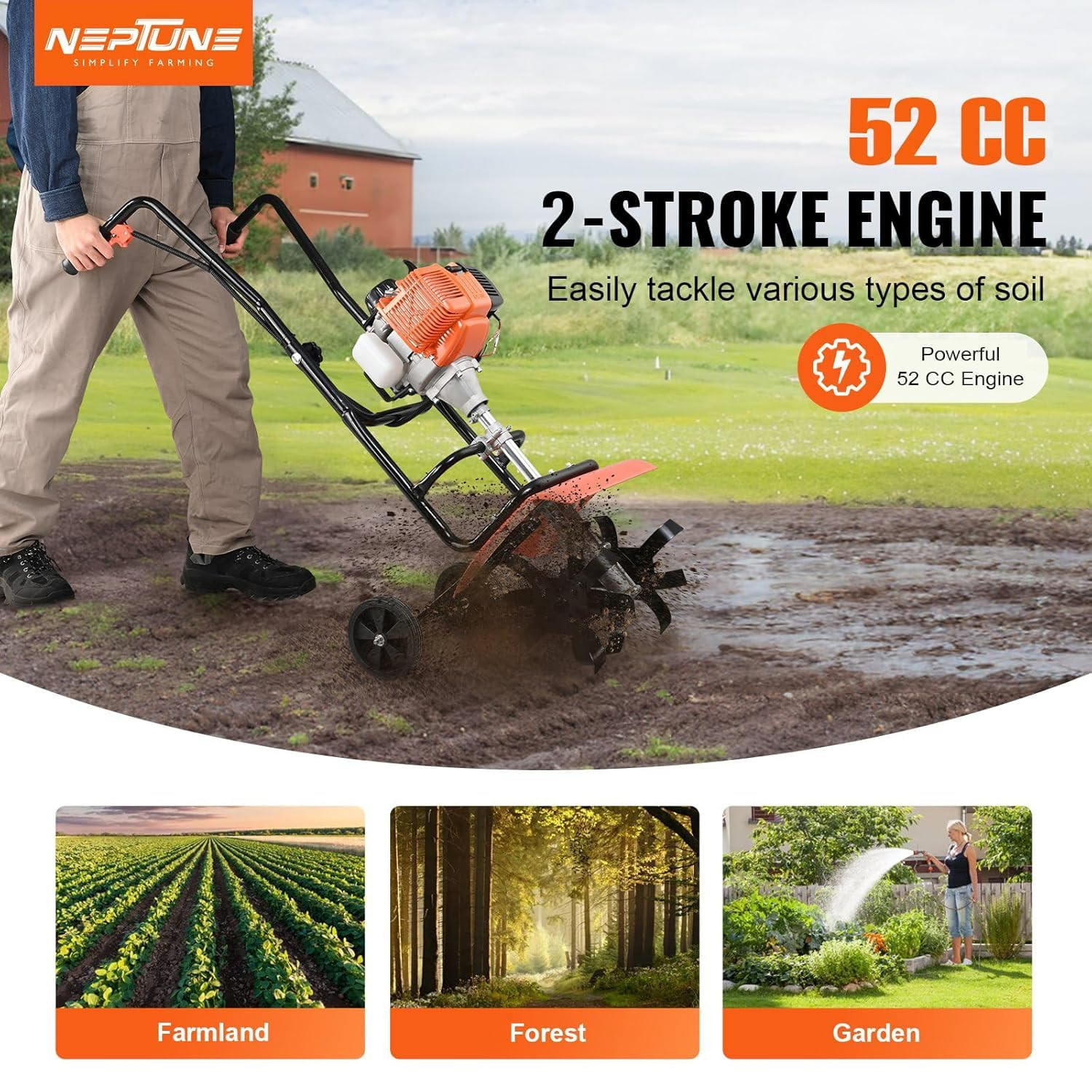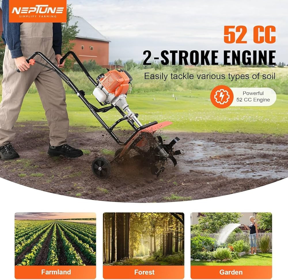 petrol engine and strong metal blades to reduce service and maintenance