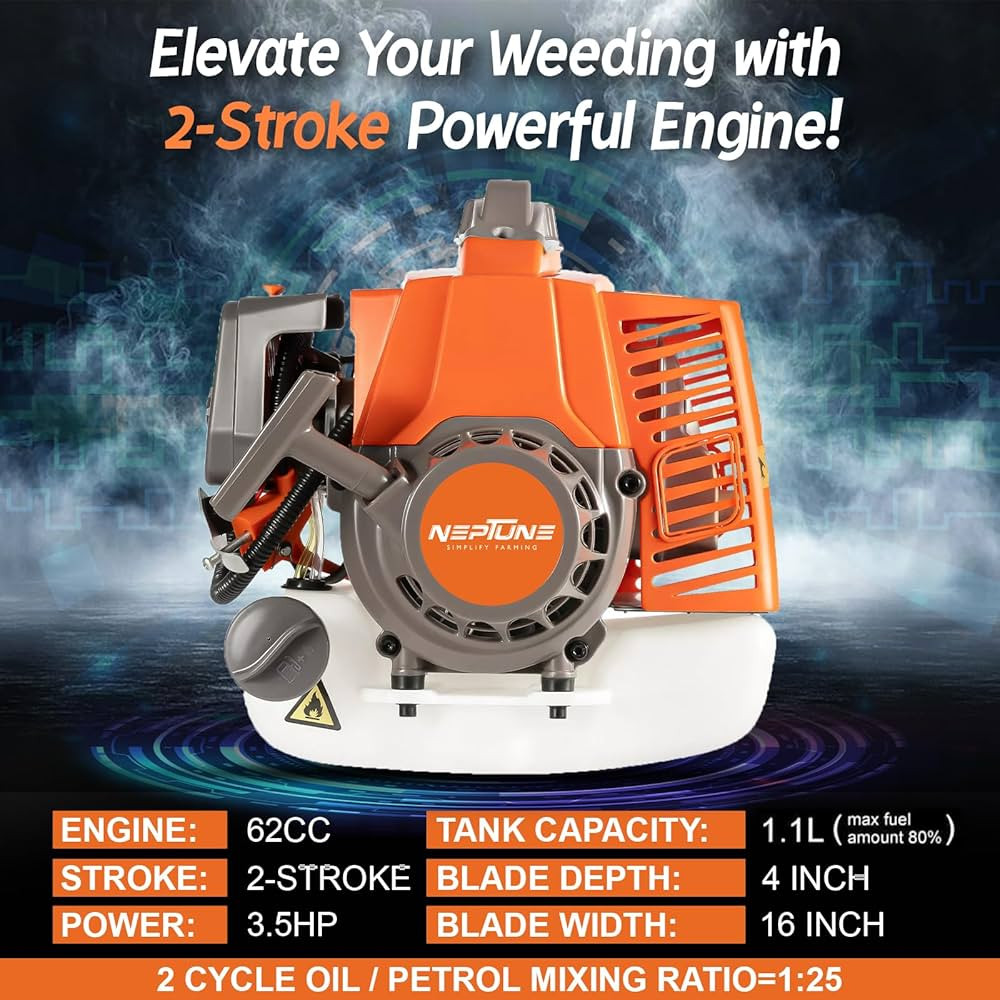 Powerful & Efficient: The high-torque 62cc engine provides enough "bite" to break through compacted soil, making seedbed preparation faster than ever.