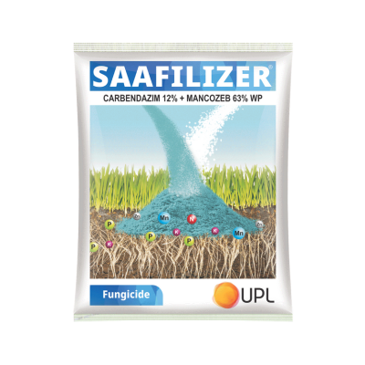 Saafilizer Fungicide is a broad-.spectrum fungicide containing Carbendazim and Mancozeb. It works by inhibiting fungal cell division and disrupting fungal cell membranes, effectively controlling a wide range of fungal diseases in crops.