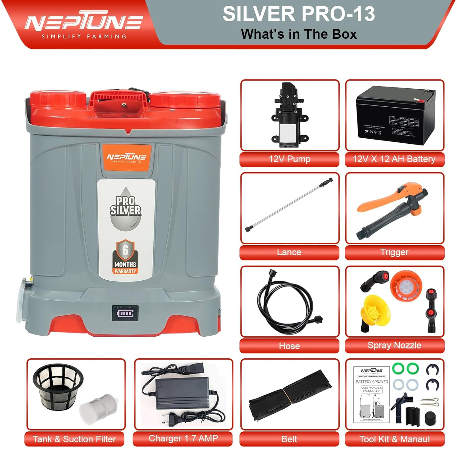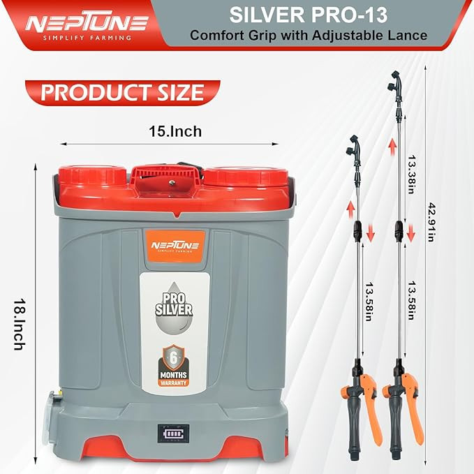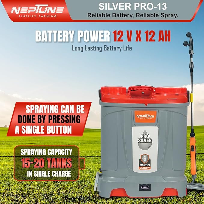 Tank Capacity: ~20 Litres Battery: 12 V / ~13 Ah Rechargeable