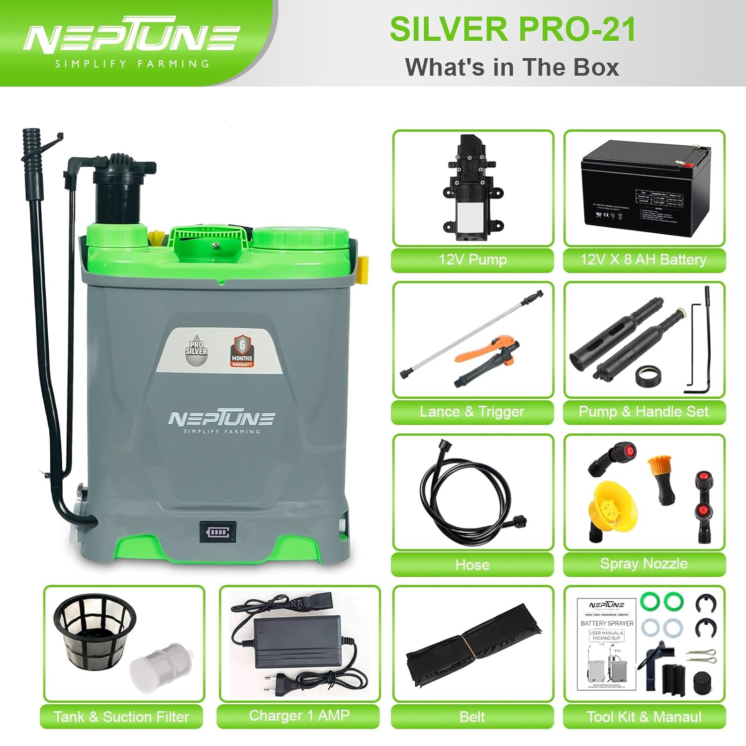 Tank Capacity: ~20 Litres Battery: 12 V / 8 Ah Rechargeable Pump Type: Dual Function (2-in-One)